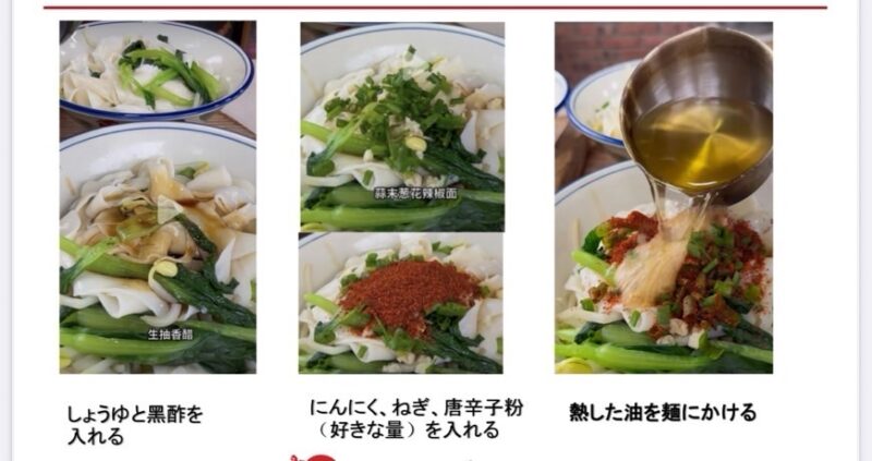 油泼面は初めて食べる料理でしたが、教わりながら作ったので楽しく作ることができました。
